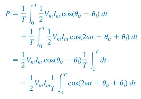 Look that the instantaneous power frequency is twice the frequency of voltage or current. A circuit element dissipates or produces power according to P IV where I is the current through the element and V is the voltage across it. In one complete period the average of oscillating term is zero.
